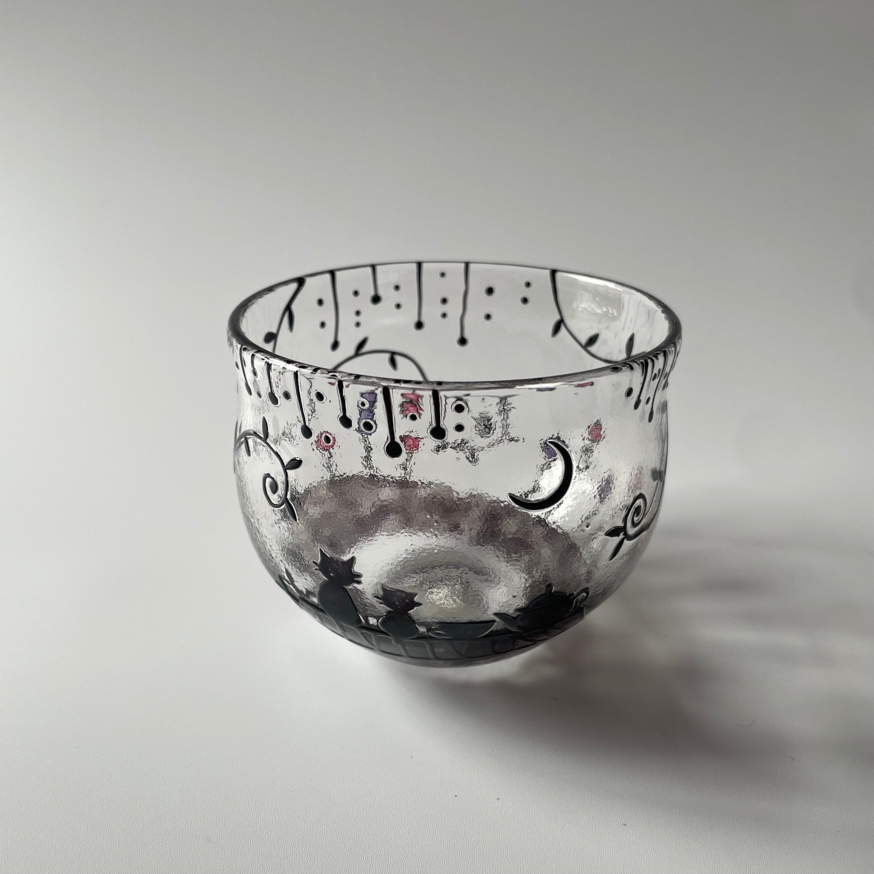 夜の庭をそっとすくい取ったような、物語のあるガラスのグラスです。