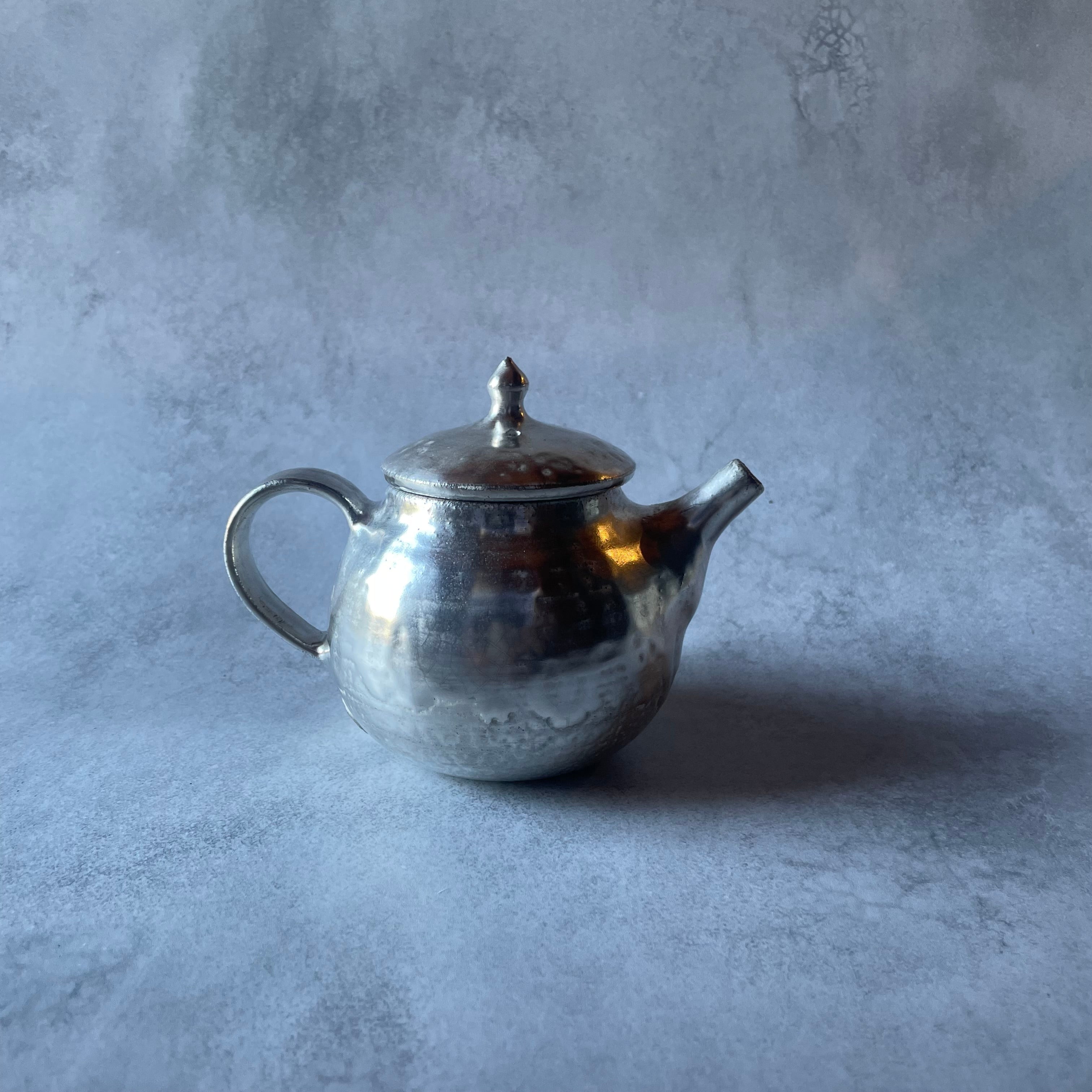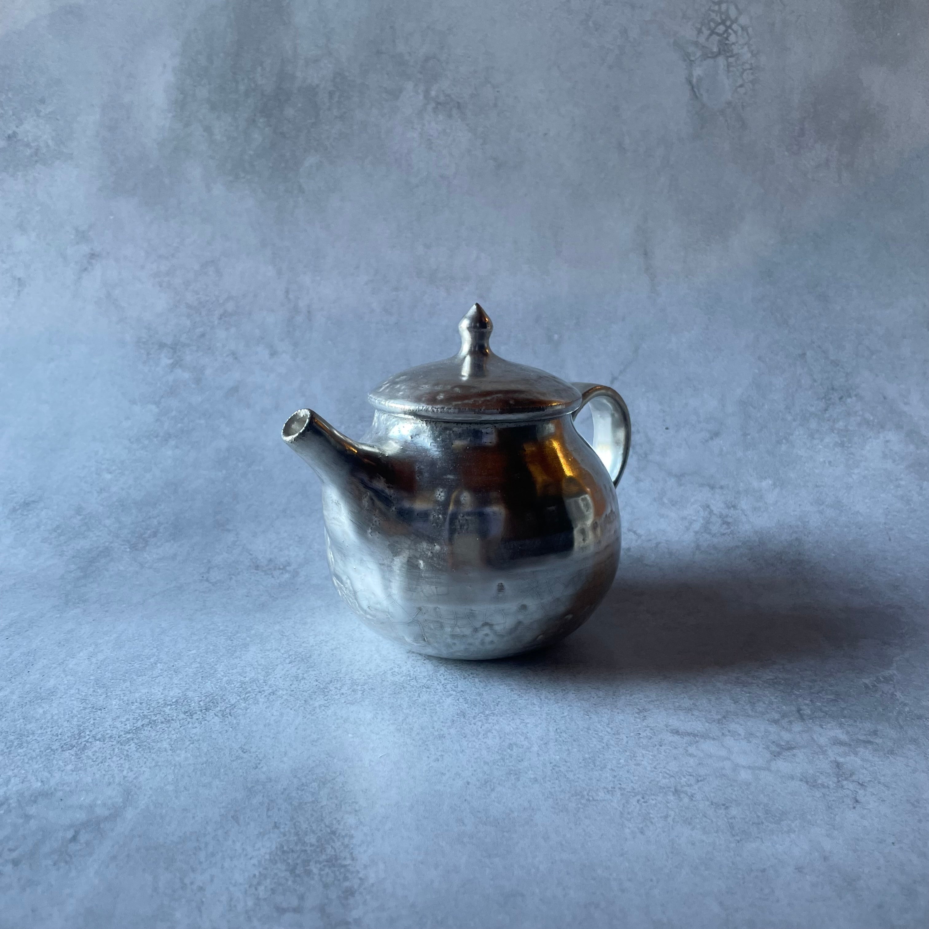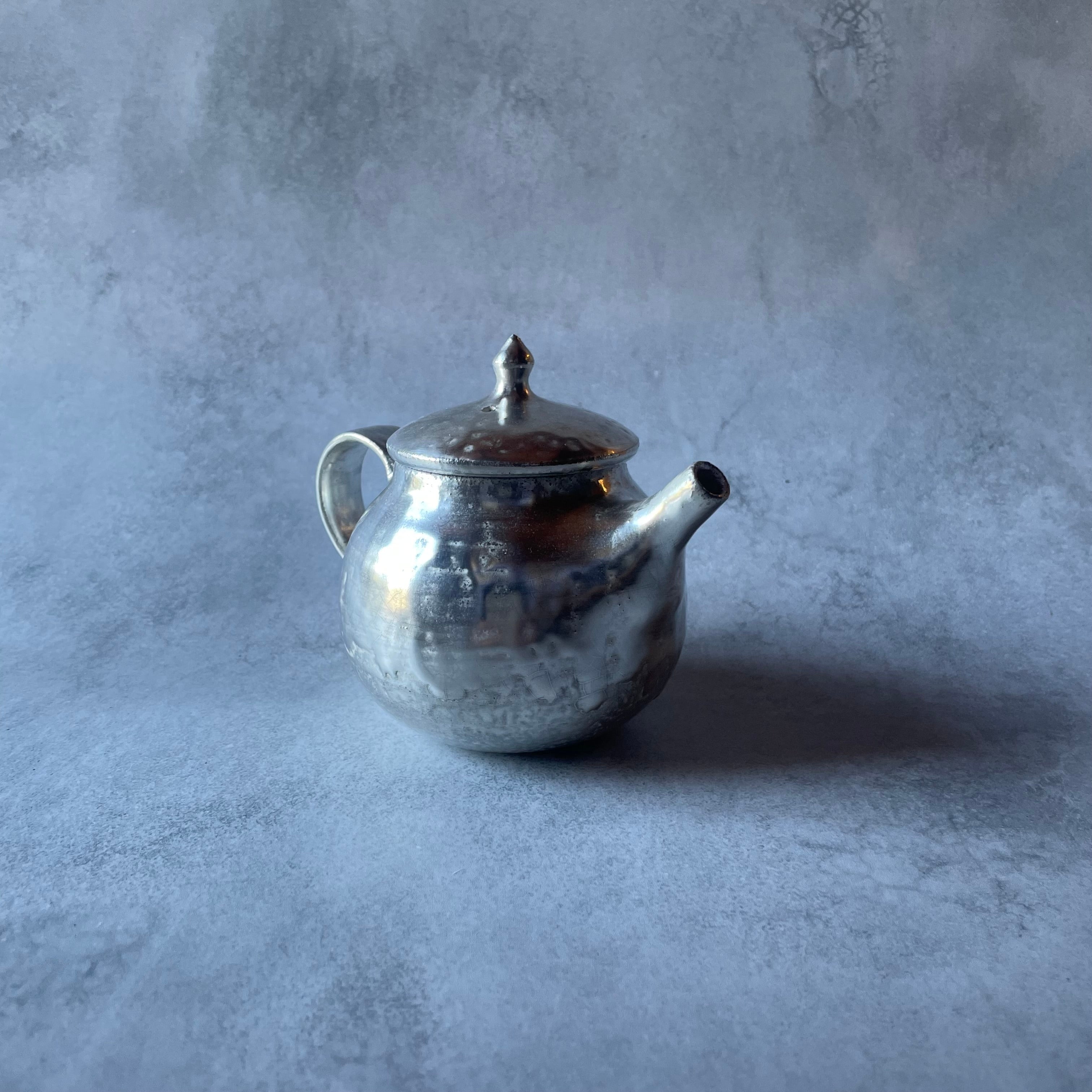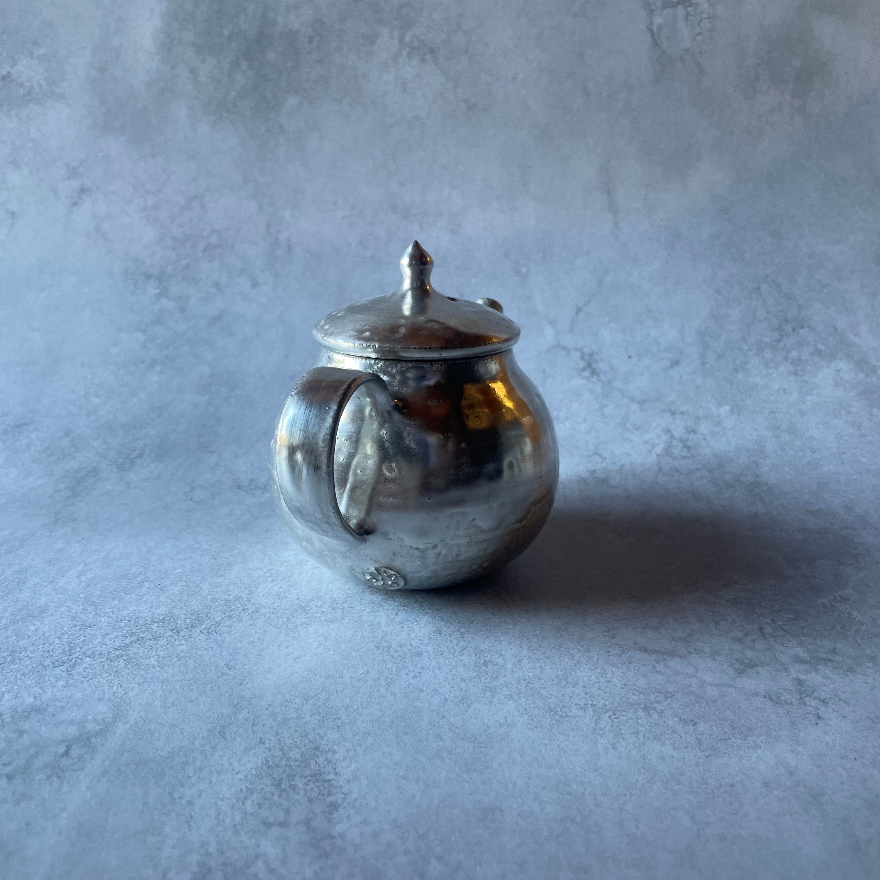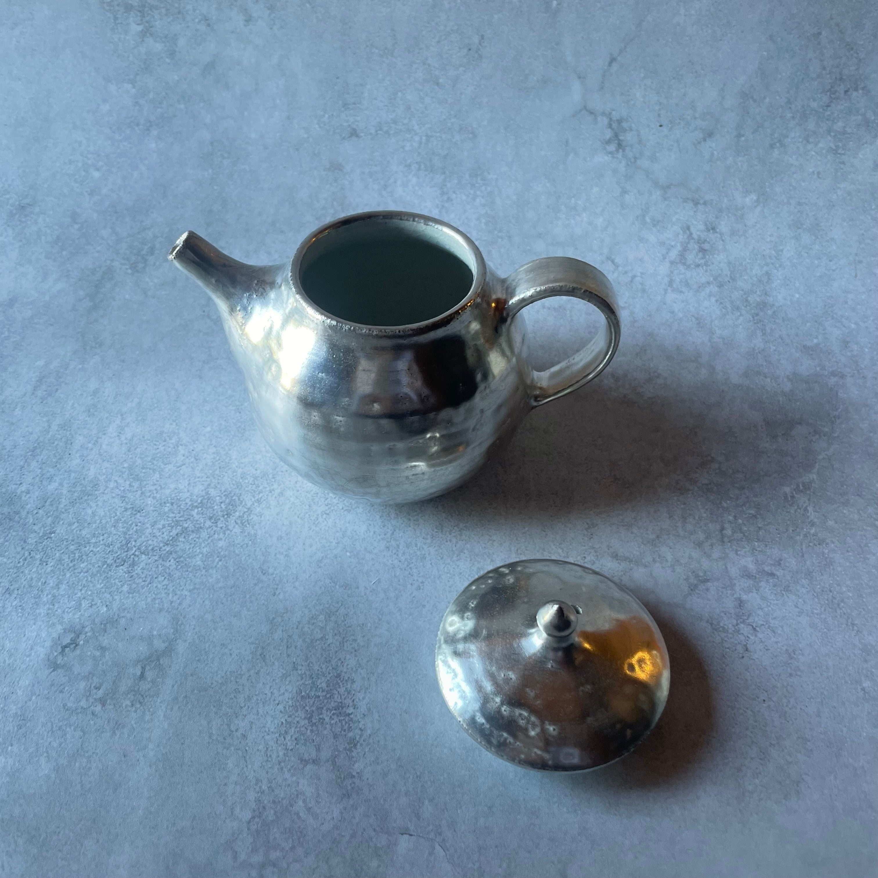 しっとりとした銀色の光沢が美しい、小ぶりなシルバーのポットです。