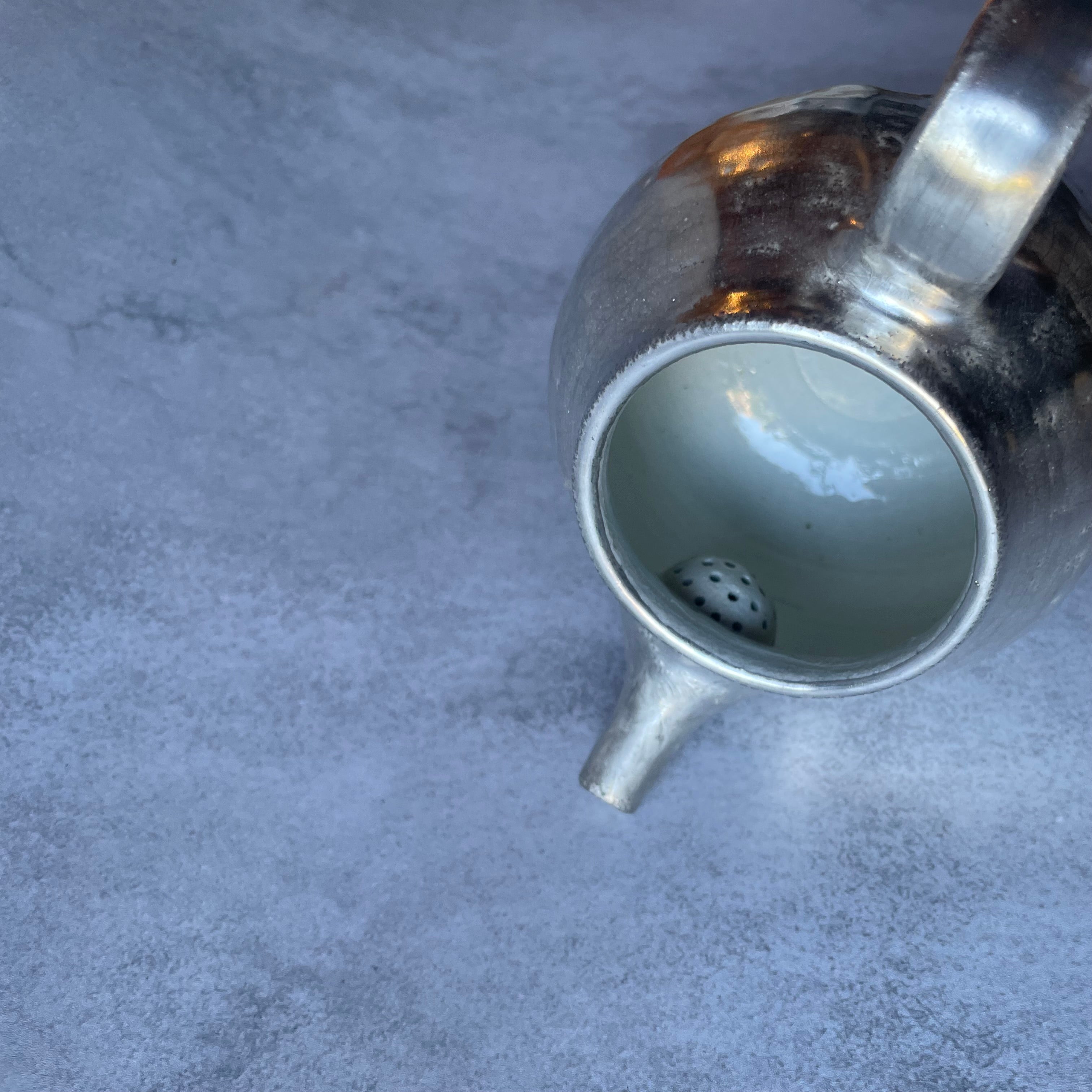 内側は、淡い色合いで、お茶の色味が美しく映えます。茶こし穴もしっかりと作られており、日常使いに十分な機能性があります。
