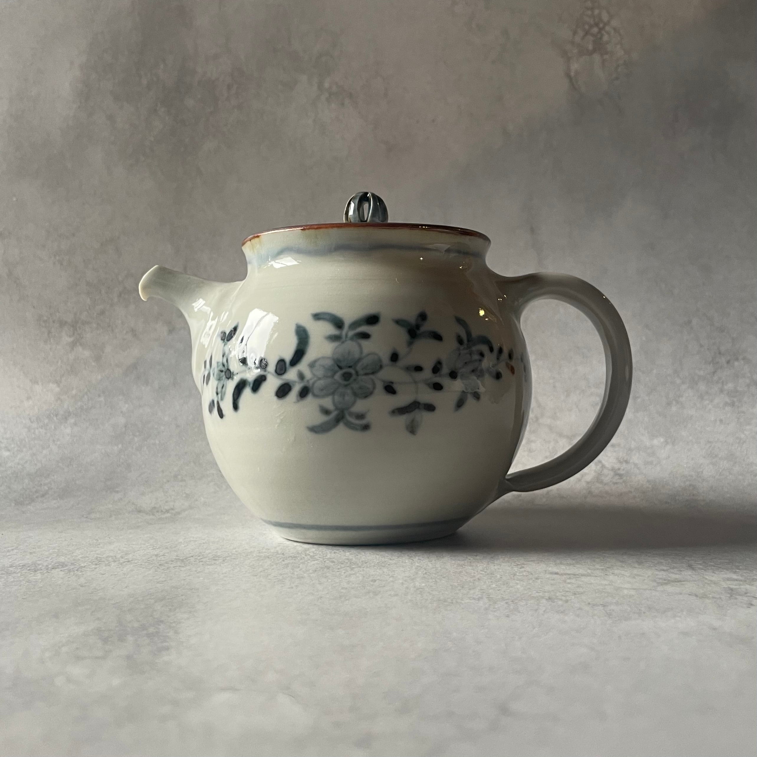 志村和晃さんの染め付けの磁器になります。青色の顔料は呉須(ごす)。淡い青色で染め付けされた絵柄や縁の茶色がレトロな雰囲気を醸し出し、藍色の濃淡を巧みに使い分けた絵付けが施されています。