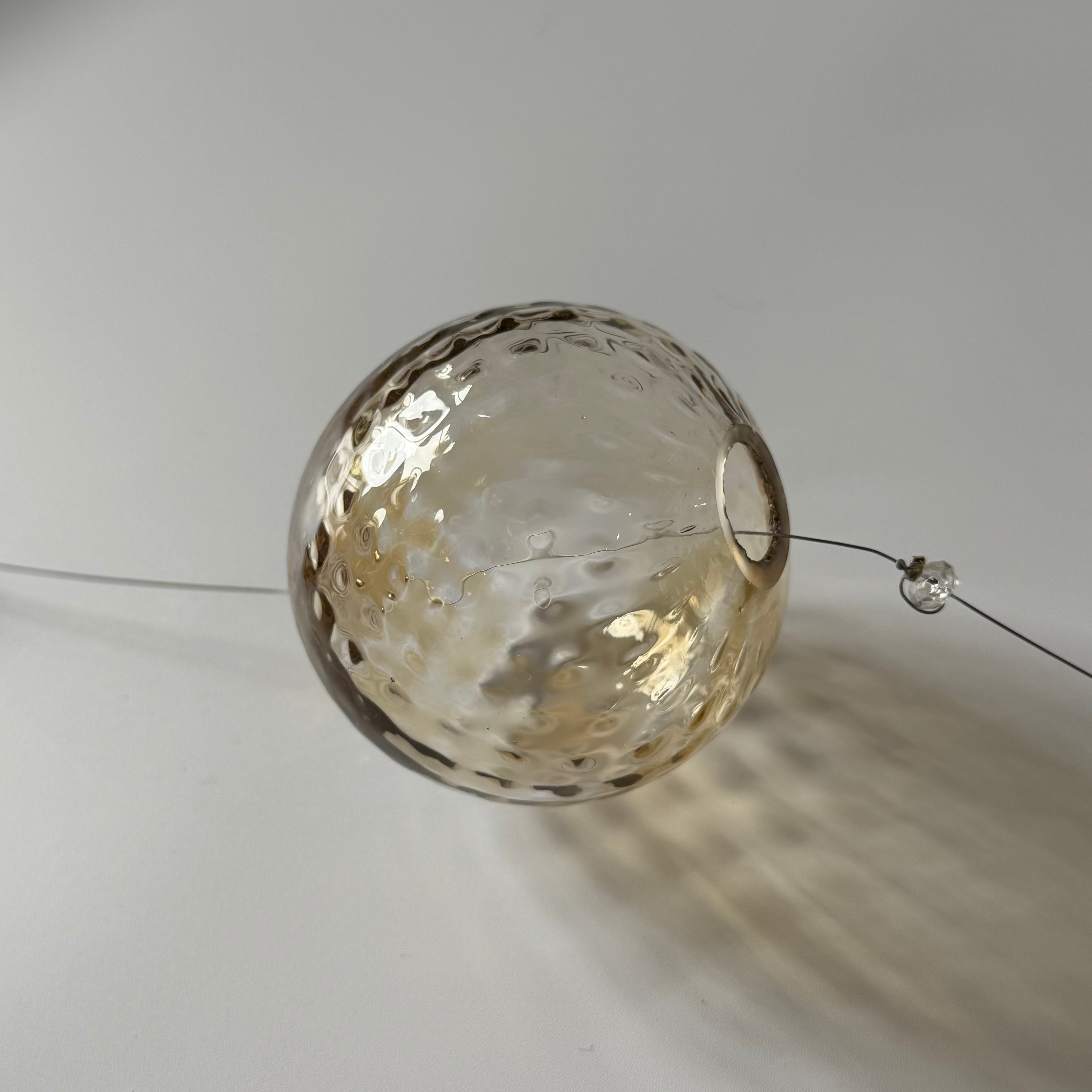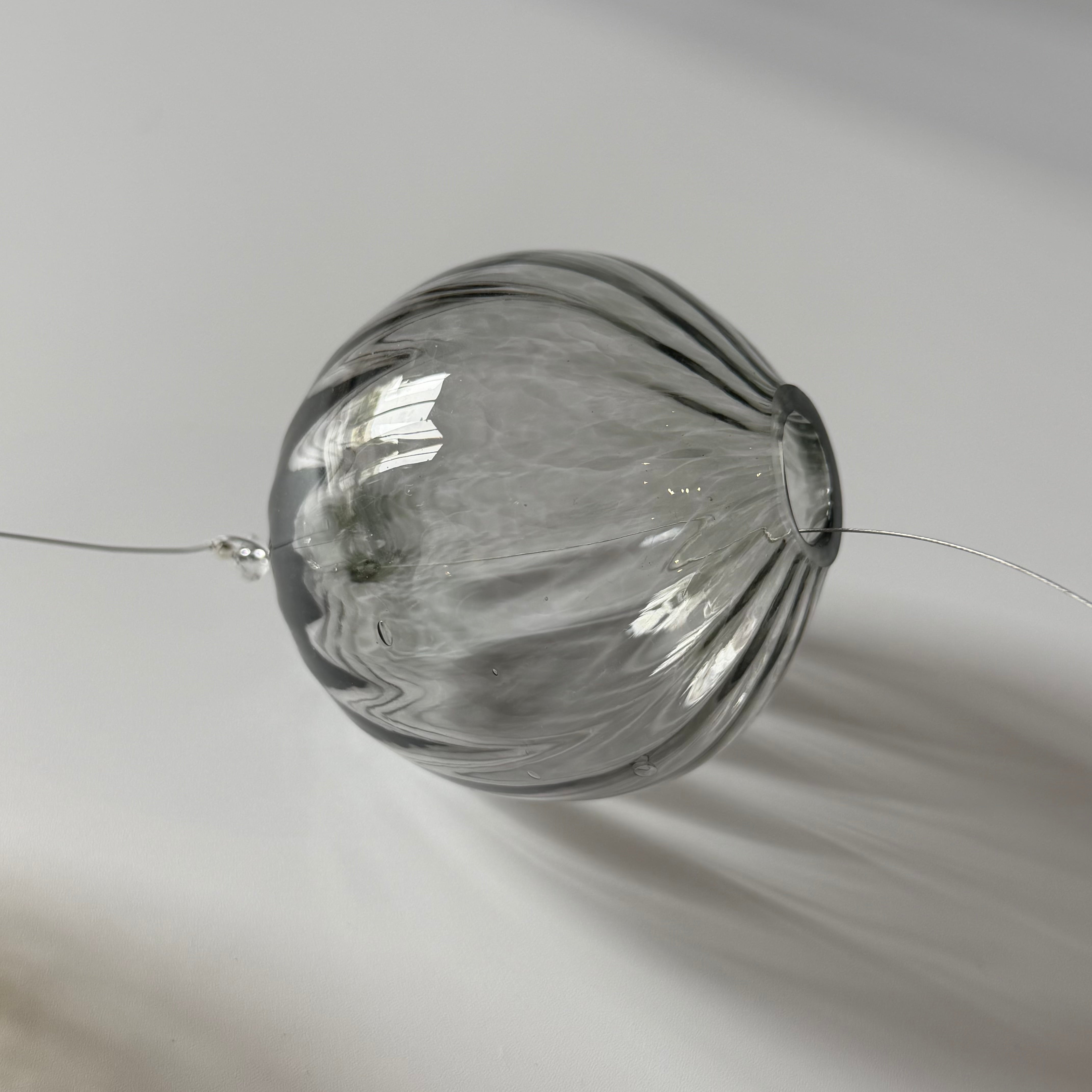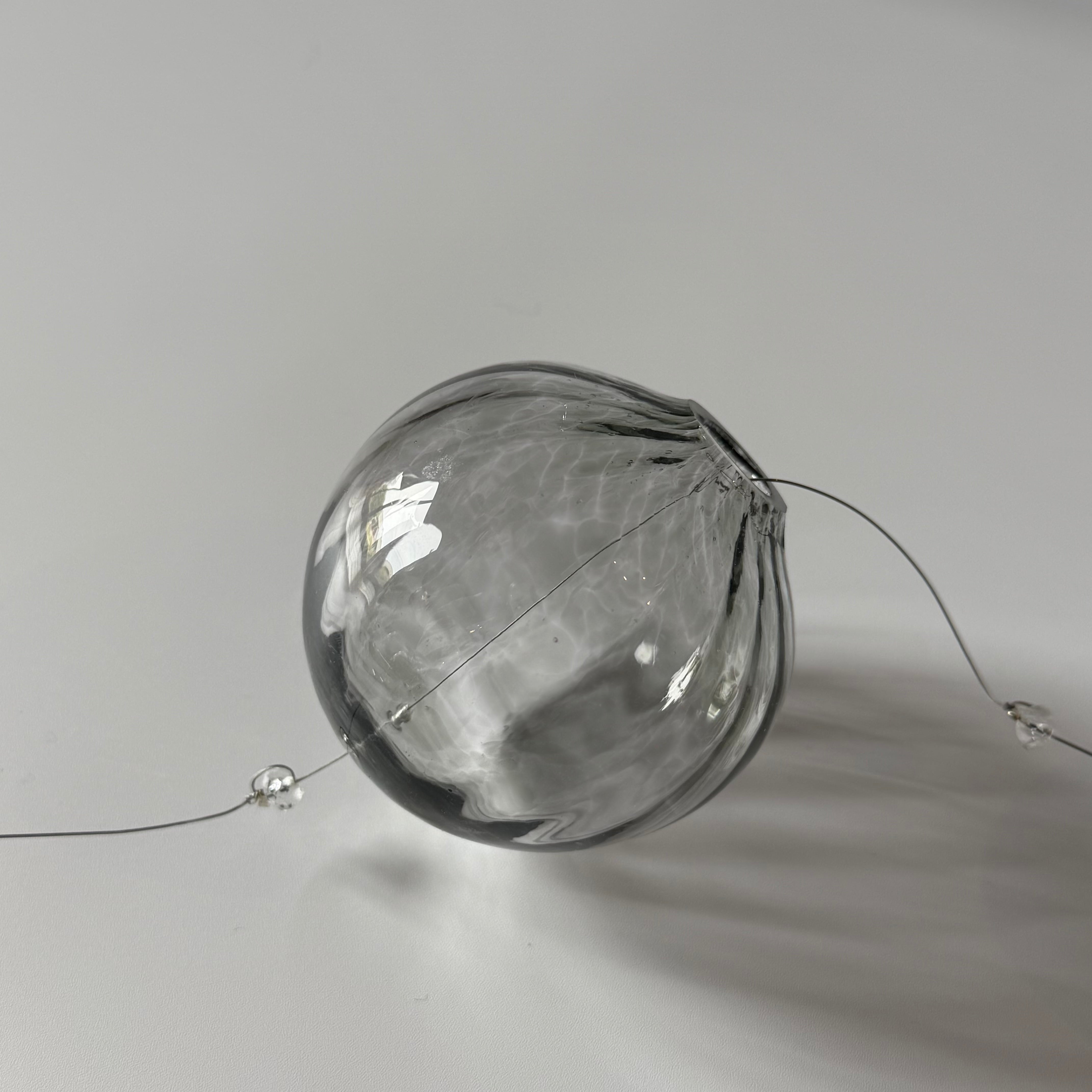 静かに揺れるたび、光を浴びて空間に柔らかな表情を作り出す、吹きガラスならではの揺らぎと透明感が美しいガラスモビールです。