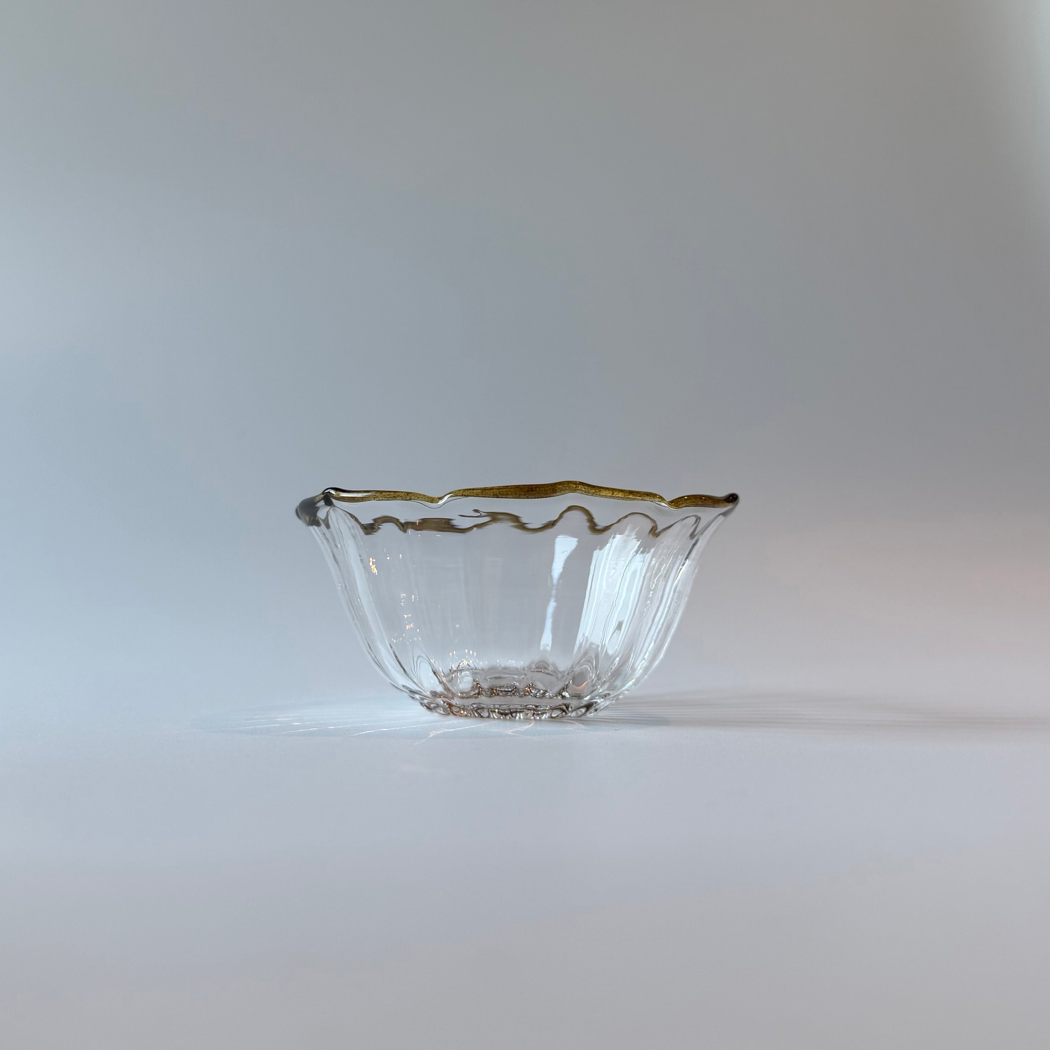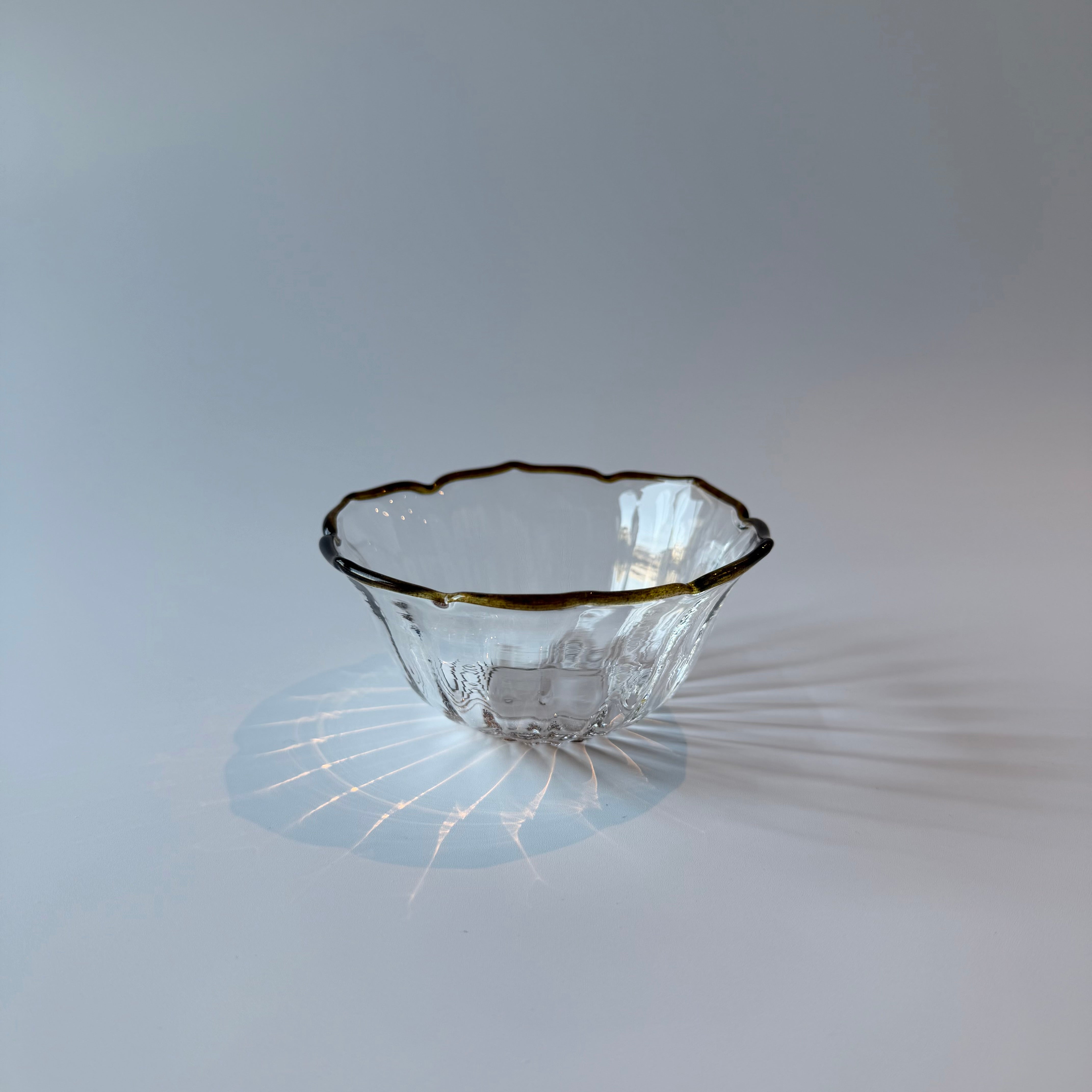 手仕事ならではの揺らぎや表情を楽しみながら、日々の食卓で、気軽に使いたくなるガラスの小鉢です。