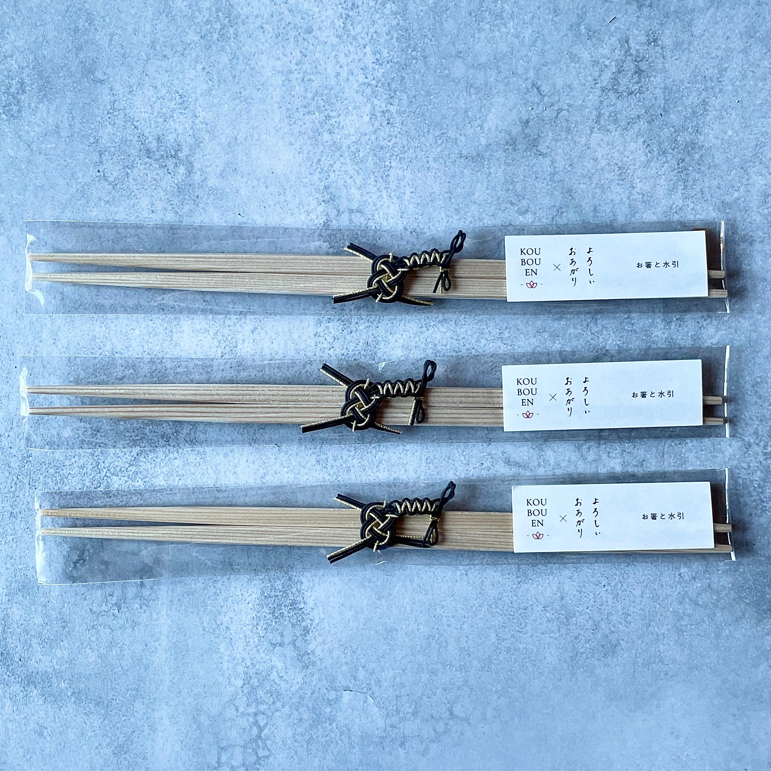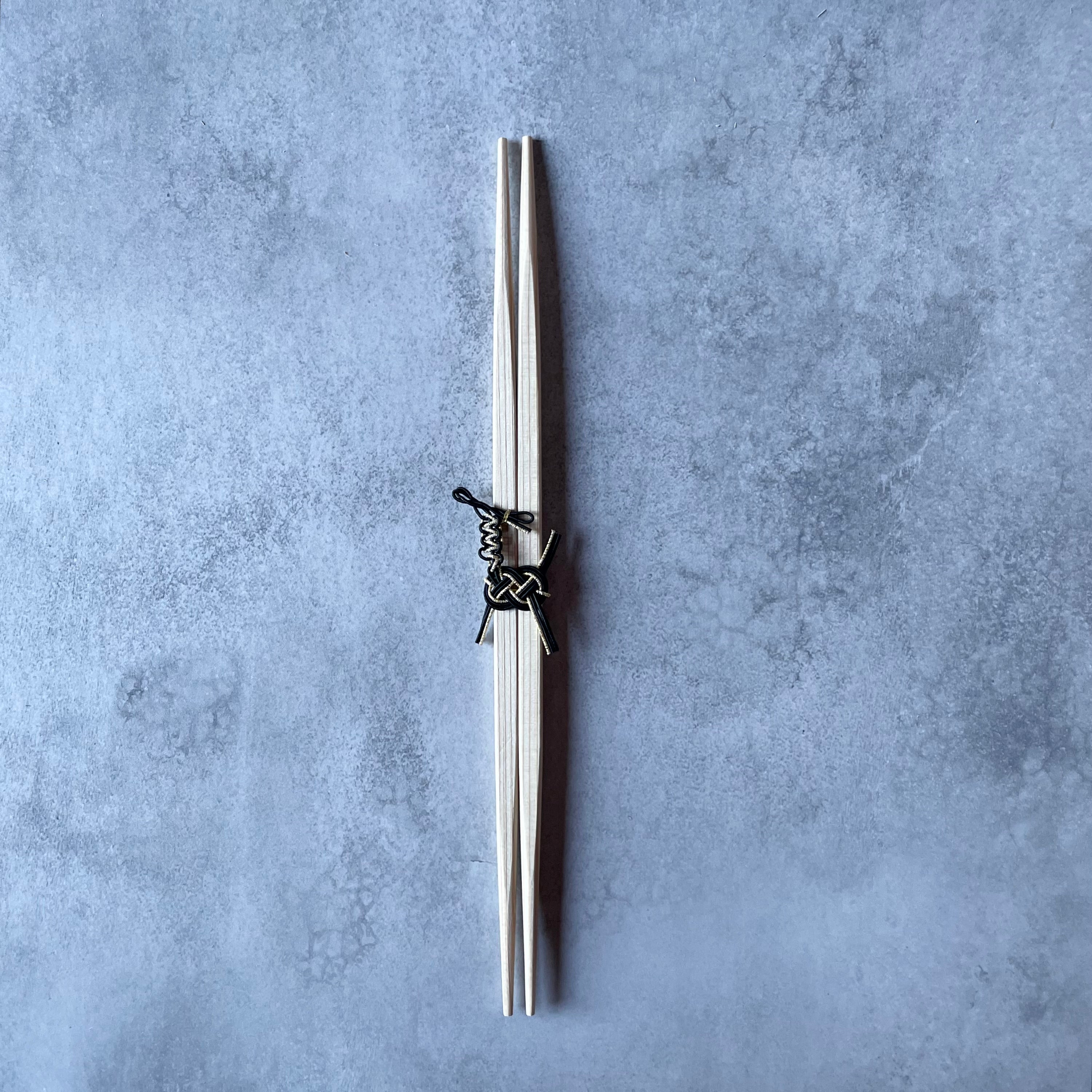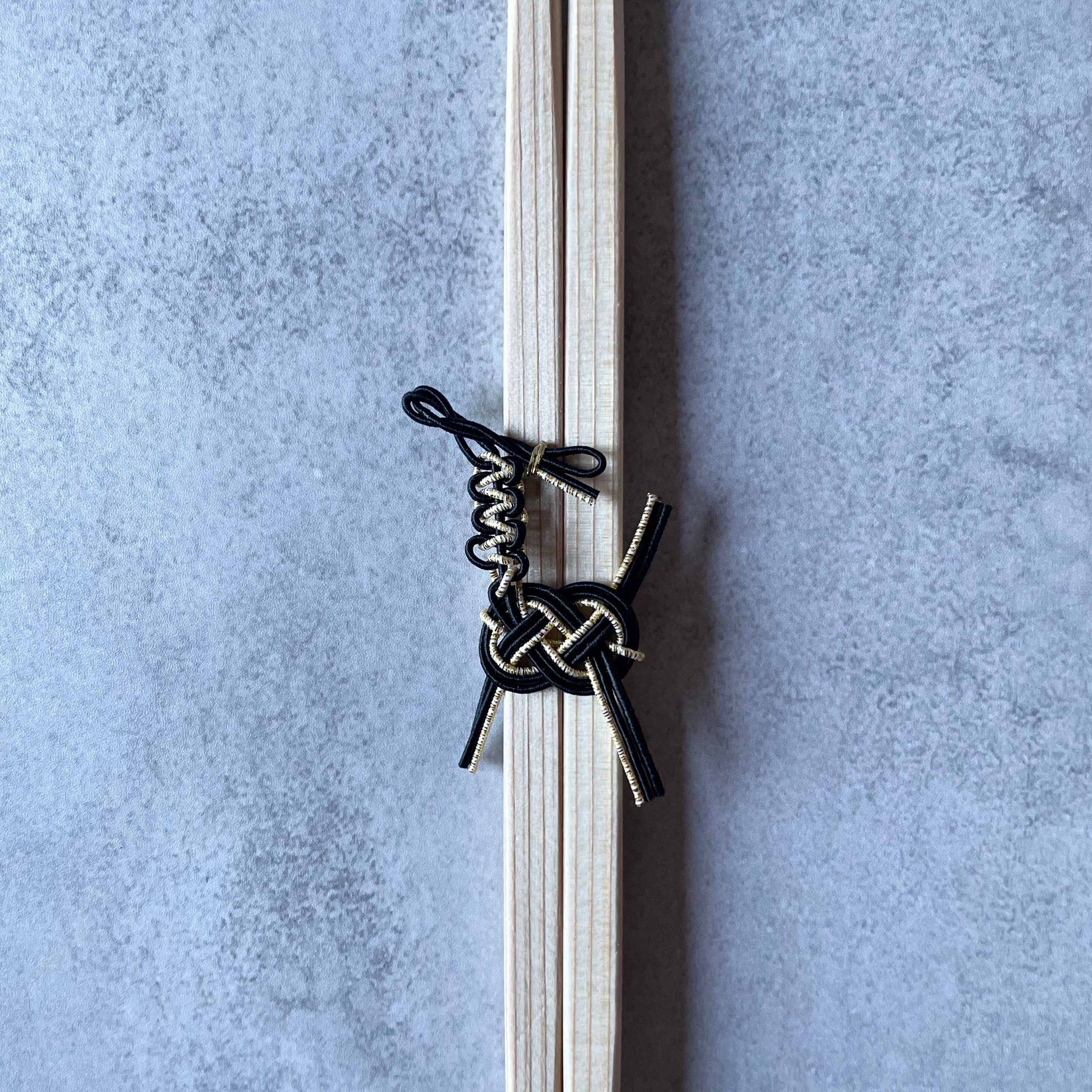 日本の伝統工芸「水引」で、干支の「馬」を一筆書きのように結い上げた、上品なお箸飾りです。黒と金の組み合わせが凛とした存在感を放ち、シンプルな食卓にも一つ添えるだけでお正月の特別な雰囲気になります。