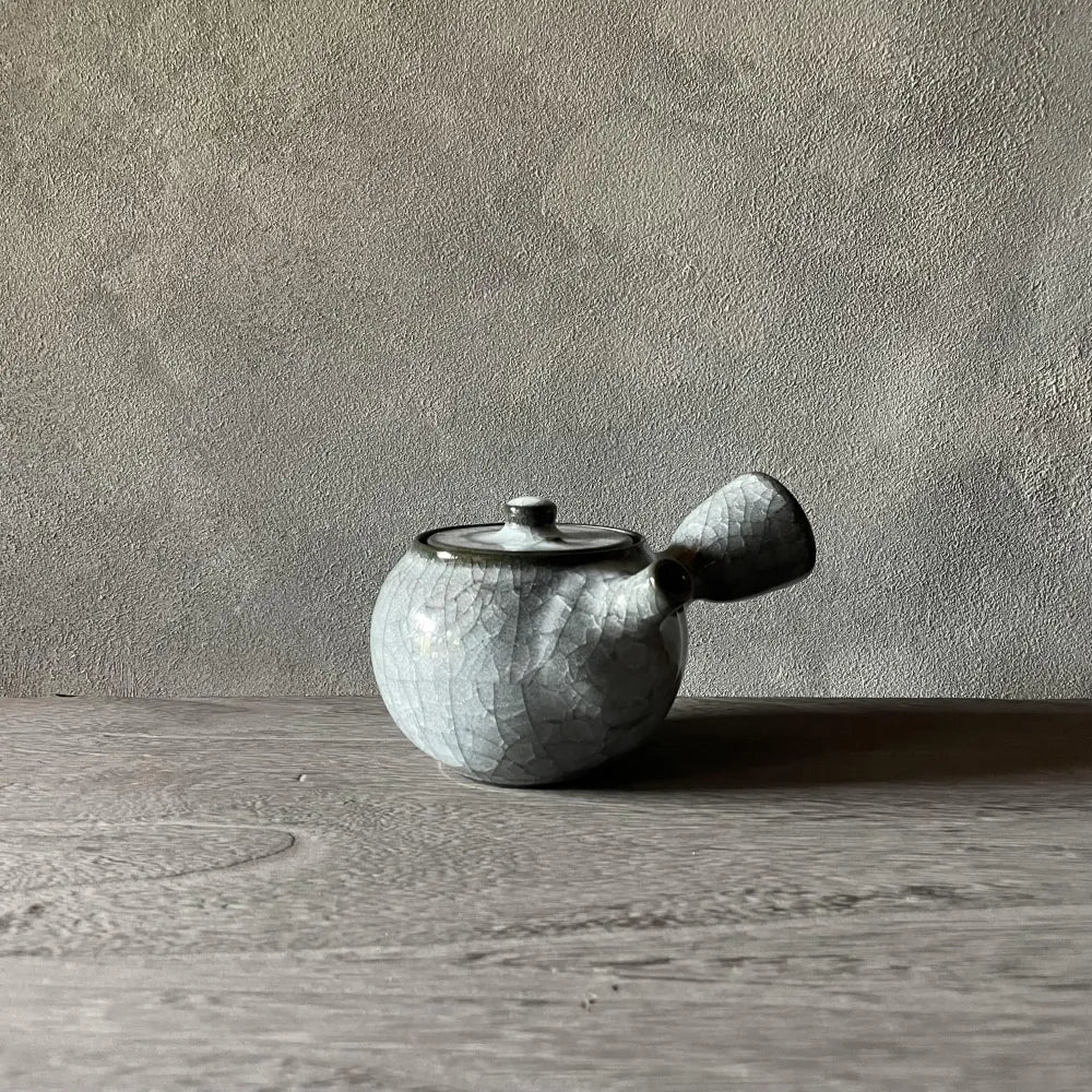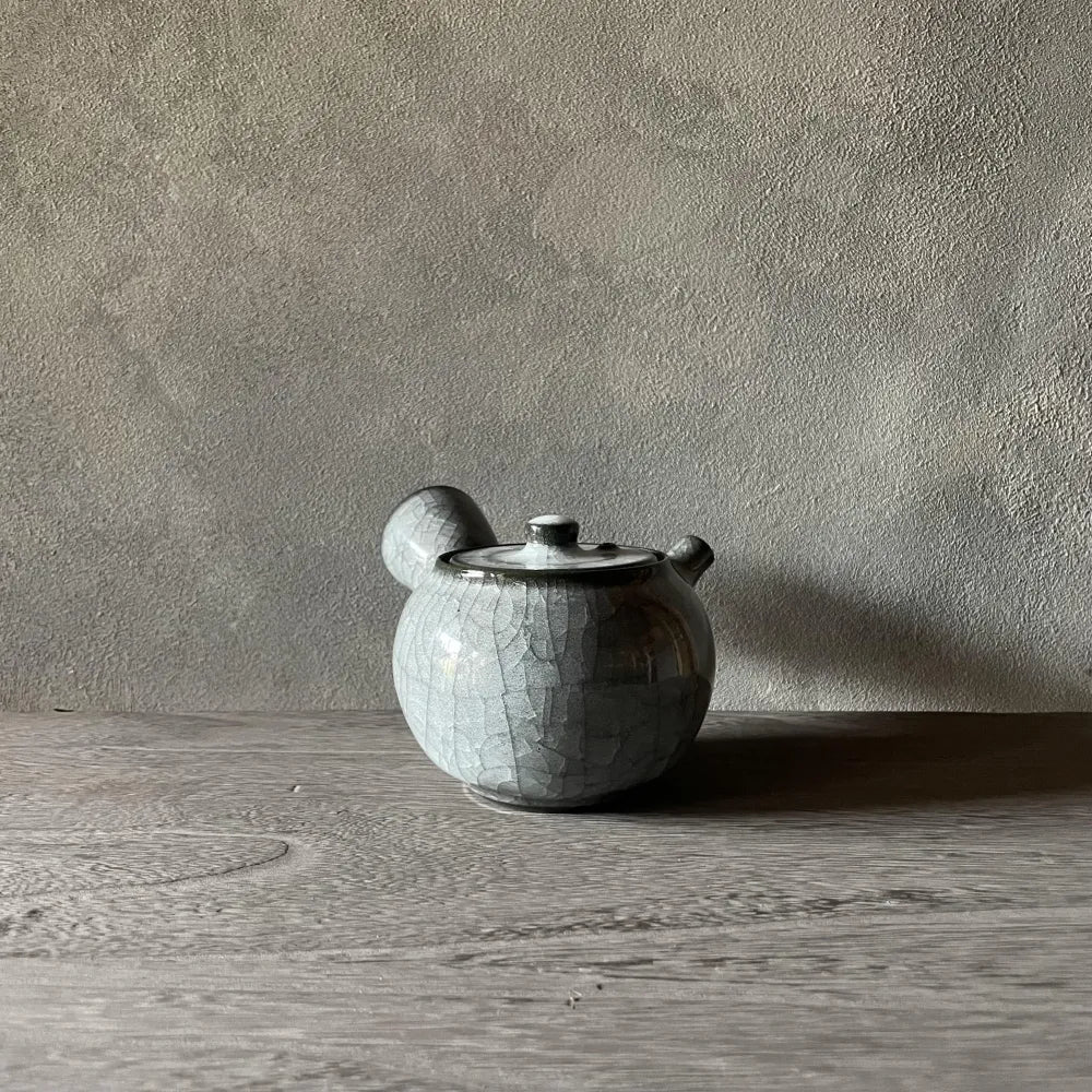青瓷の青色を作り出す鉄分を釉薬に配合しない透明な釉薬の白瓷(はくじ)の急須。