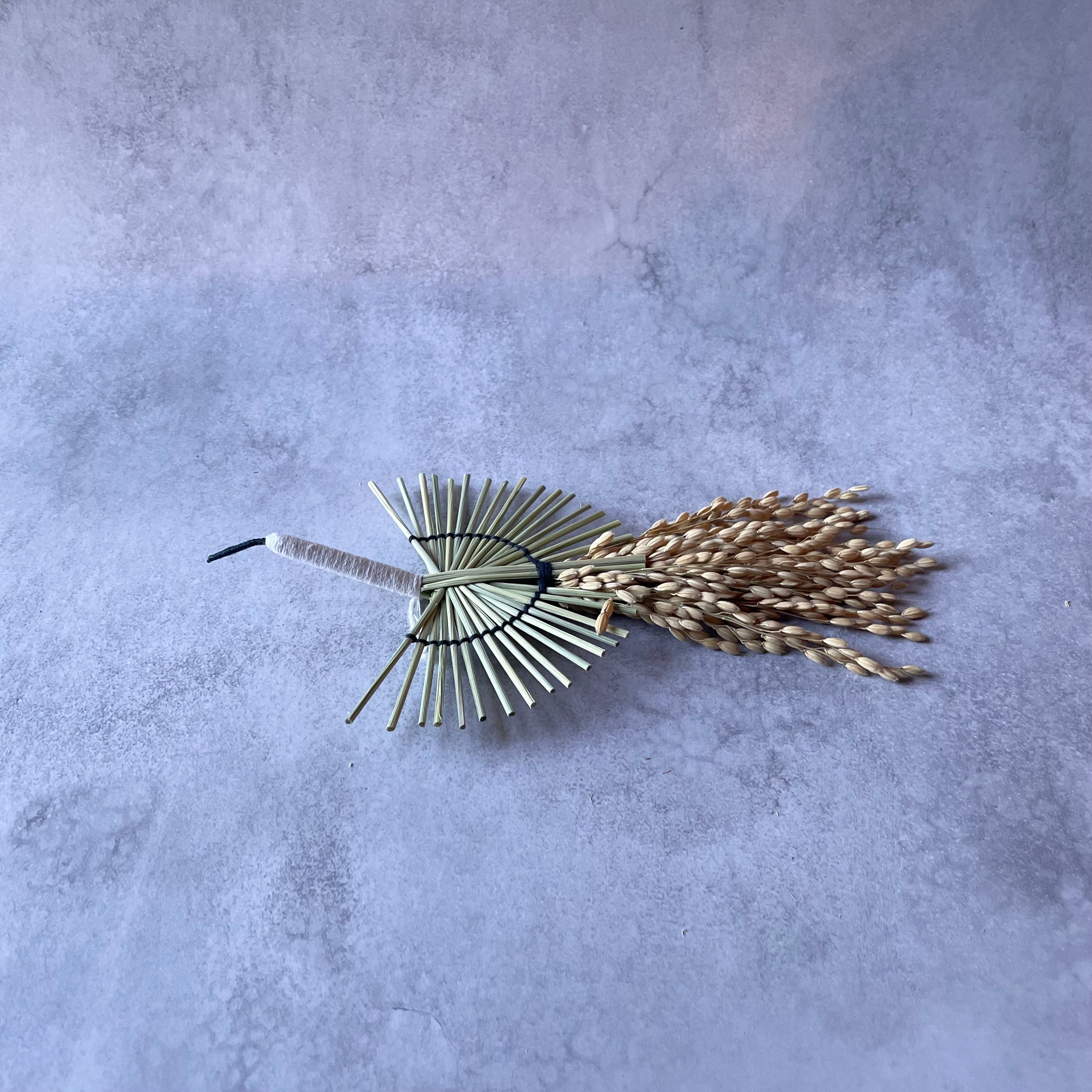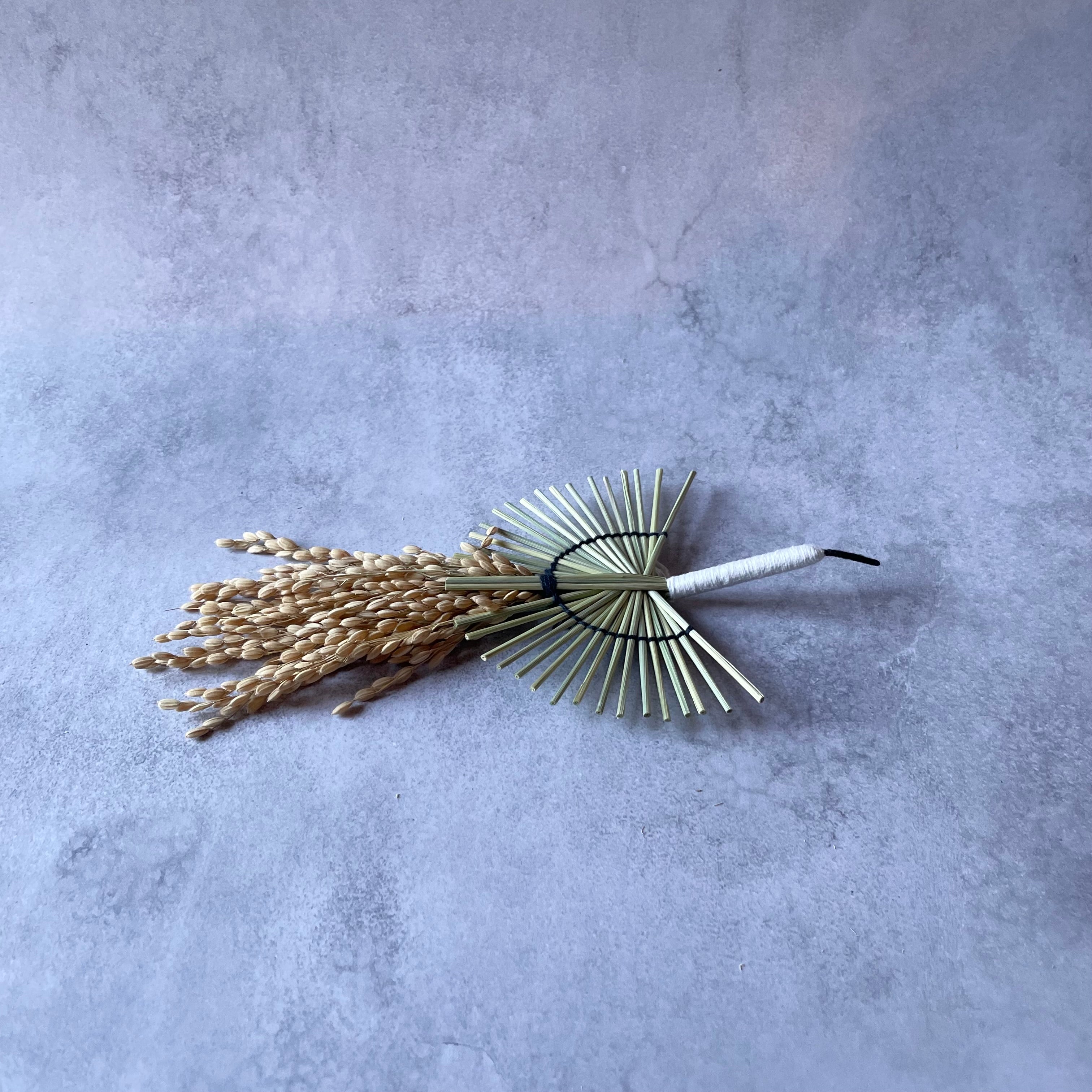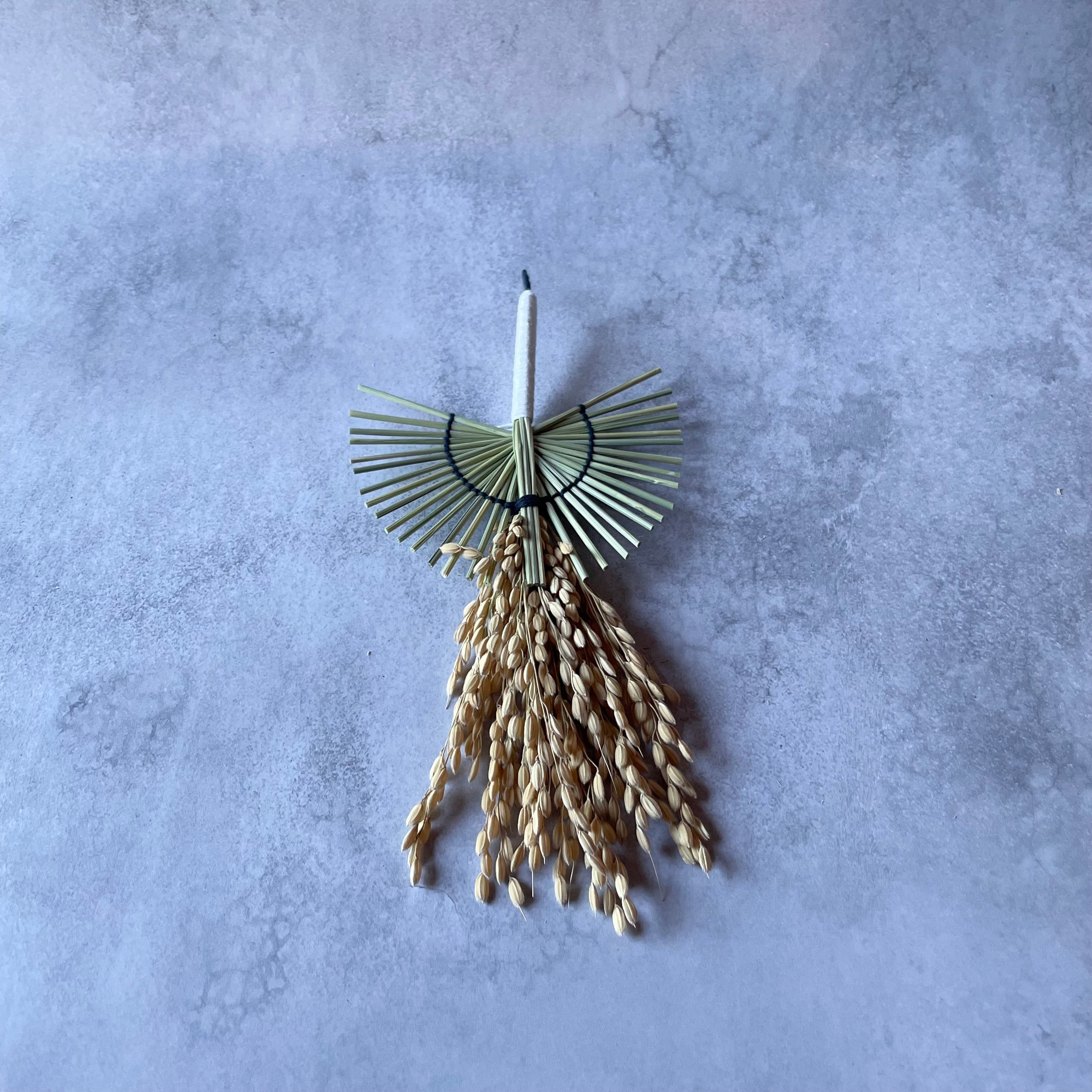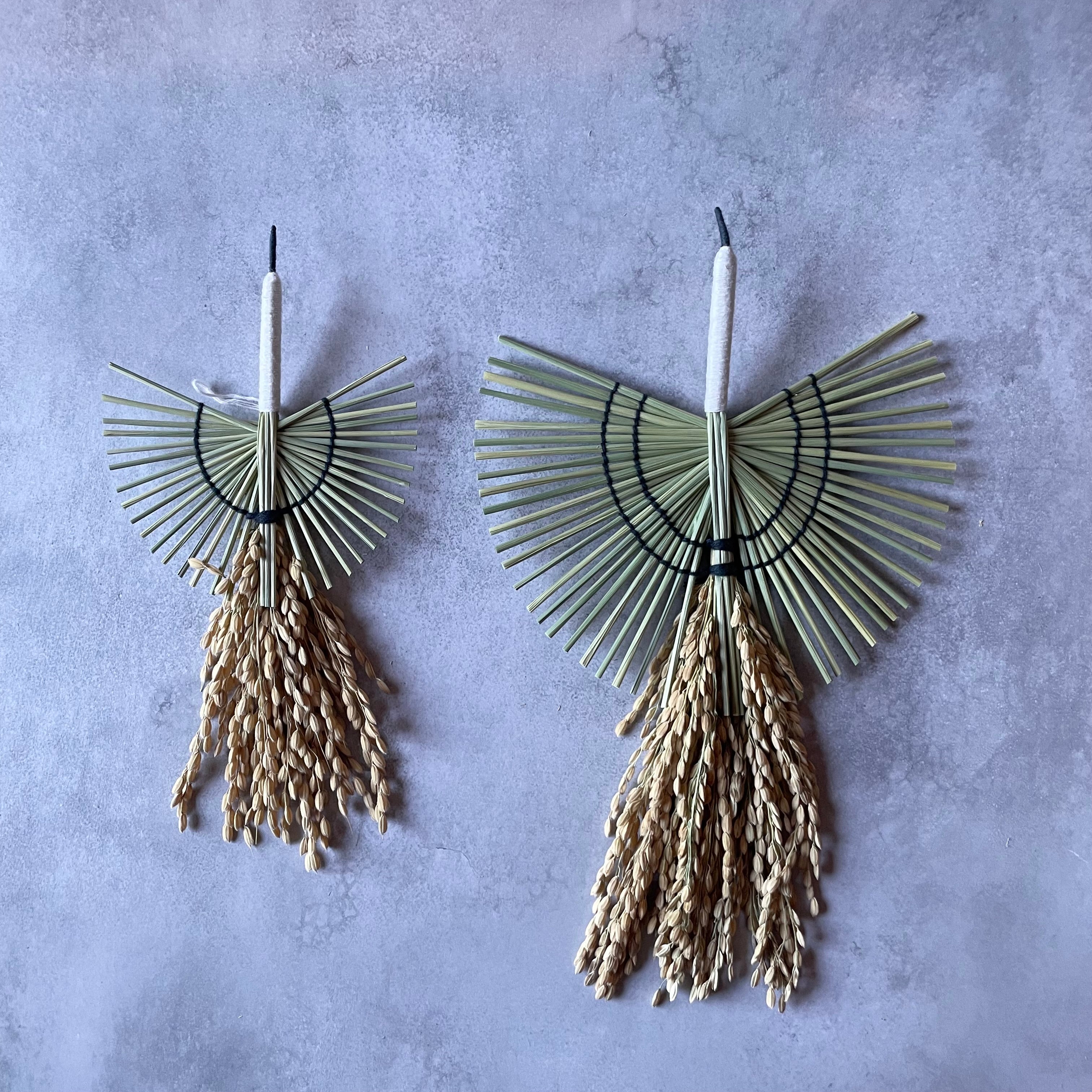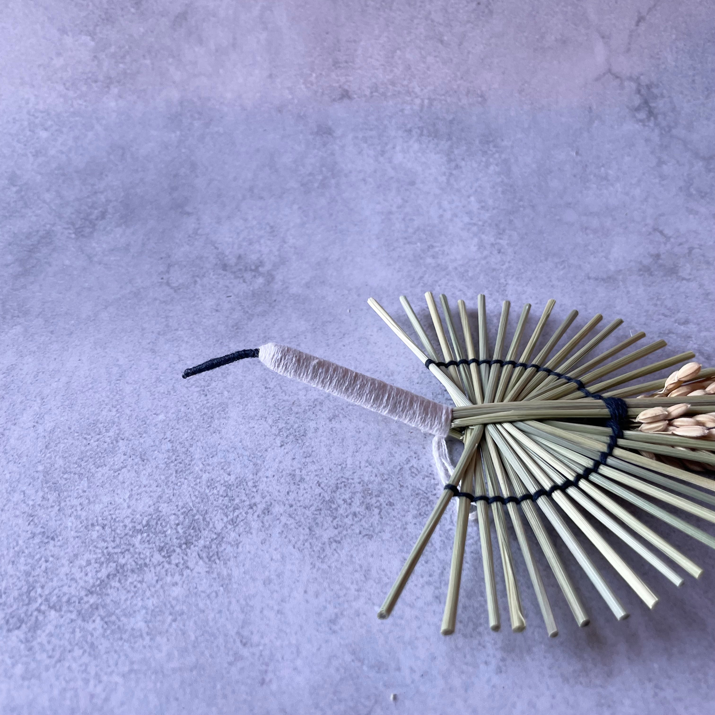 「新しい一年が、あなたにとって高く美しく羽ばたくものとなりますように」、そんな願いを込めて、伝統素材の稲わらを使い、一羽の鶴を形にしました。