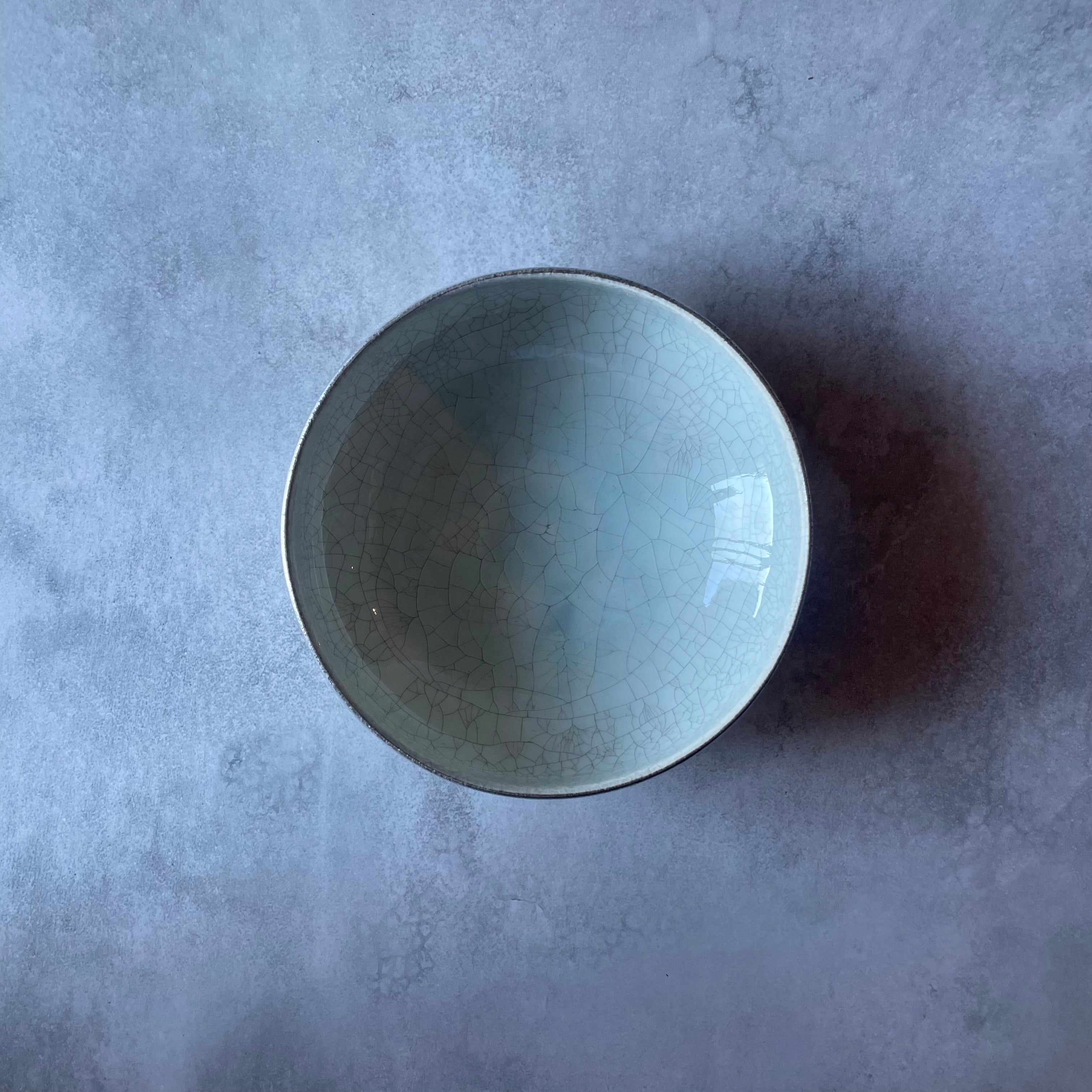 内側には細やかな貫入が広がり、まるで氷のひび割れを閉じ込めたような静かな美しさを湛えた鉢です。