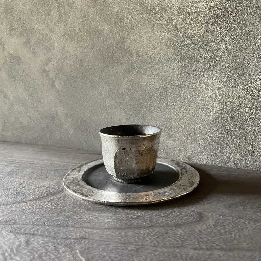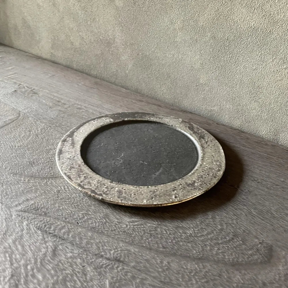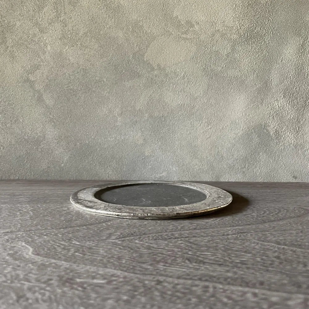 器に独特の輝きと深みのある色合いを与える銀彩のリム皿です。銀彩は、使用を重ねることで色合いや風合いが変化し、アンティークのような味わいを楽しむことができます。